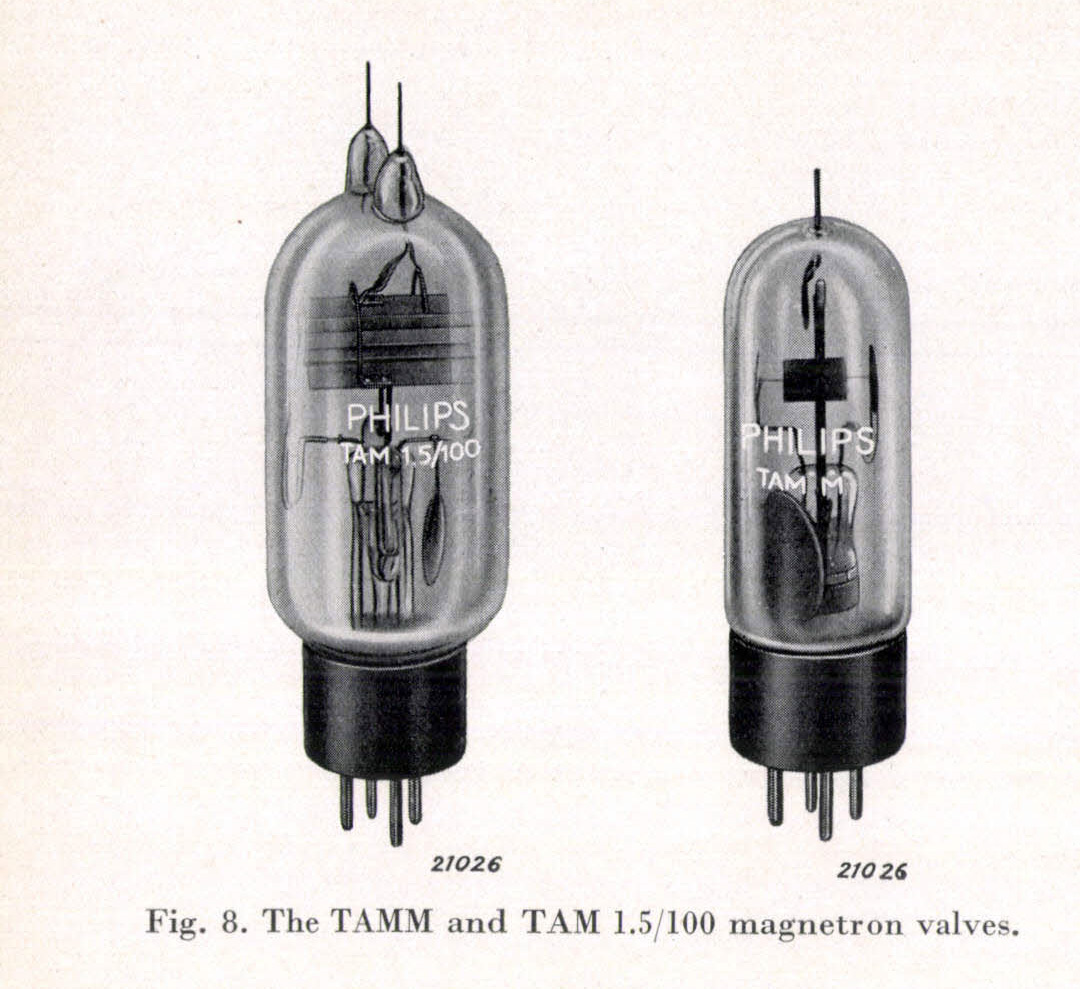 Die nachfolgende Magnetrons TAM M und TAM1,5/100 sind 2 Entwicklungen von Philips um 1937 herum. Zumindest werden sie im Philips Review, April 1937, erwähnt