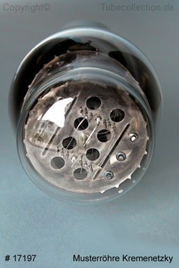 Bei der Musterröhre handelt es sich offensichtlich um eine Duo-Tetrode. Aufschrift: Eigentum Joahnn Kremenetzky AG unverkäuflich |
