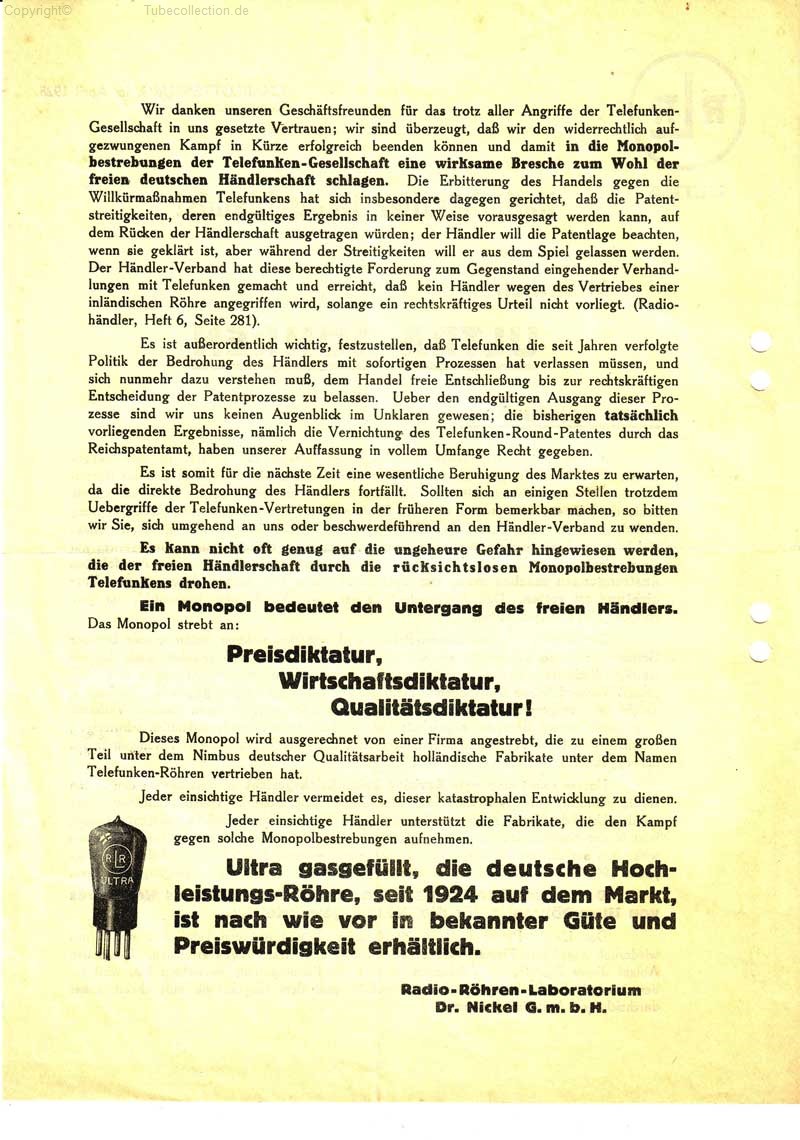Die nachfolgenden Bilder zeigen einige Dokumente von Ultra, wie Postkarten, Bestellscheine, Kundeninformationen usw. Weitere Links zu Dr. Gerhard Nickel |