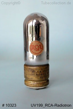 Als die USA in den ersten Weltkrieg eintraten wurde die der "Marconi Wireless Telegraph Company" gehörende "Transatlantic Telegraph Station" in New Brunswick, New Jersey, von der US-Navy übernommen. Die wollten die Leistung von bislang 50kW auf 200kW ausbauen. Als die Marconi WTC sich nicht an den Kosten beteiligen wollte, erfolgte die Installation eine Alexanderson Alternators von 200kW auf eigene Kosten durch die General Electric. 1919 trat die "British Marconi" mit GE in Verhandlungen zum Kauf von 24 Alternatoren mit dem Recht auf exclusive Nutzung durch Marconi. Um die Verbreitung der Technologie zu verhindern lehnte man den Auftrag ab und kam bei der Navy und GE zu der Überlegung, eine eigene amerikanische Firma, die RCA ( Radio Corporation of America" zu gründen. Dies geschah am 17. Oktober 1919. Einen Monat später wurde die "American Marconi Company" mit der RCA verschmolzen. Es wurden dann diverse wechselseitigen Verträge mit GE und der AT&T, sowie Westinghouse und weiteren produzierenden Firmen geschlossen. RCA war zu der Zeit eine rein operative Firma zum Zwecke der Herstellung von Funkverbindungen zu, Schiffen, sowie transatlantische Funkverbindungen. Man handelte dazu mit Geräten und Röhren, die überwiegend von GE und Westinghouse hergestellt wurden. Die ersten Röhren, die UV200 und UV201 wurde bereits Ende 1920 unter eigenem Namen auf den Markt gebracht. Im Juni 1021 trat auch "Westinghouse Electric and Manufacturing Company" dem RCA-Konsortium bei und lieferten bereits kurze Zeit später die WD-11 und WR-21. Später kamen noch weitere Typen hinzu. Erst 1930 wurde ein Tochterunternehmen, die "RCA Radiotron Inc." als produzierendes Unternehmen gegründet. Die frühen RCA-typischen Bezeichnungen lauten alle auf UX.. oder UV... Der Buchstabe "U" steht für "unit" und kam mit Einführung eines Sockels für Röhren zustande. Der Buchstabe "V" stand für "Valve". Alle UV.. haben kurze, alle UX.. lange Stifte. RCA baute noch viele Spezial-Röhren, unter anderem die RCA Power Tubes für TV und Radar-Anwendungen |