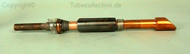 Diese Elektrode ist ca. 30cm lang, jedoch ca. 0,75kg schwer und war an der linken Seite mit dem Glaskolben verschmolzen. Verständlich, dass hier bei unzureichender Verpackung, das Glas brechen muss. Heizfäden Dise sind insbesondere bei direkt geheizten Röhren bruchgefährdet. Man kann den Heizfaden mit einer Hochspannungsleitung zwischen zwei Masten vergleichen. Oft genügt bereits ein kleiner Stoß und er reißt ab. Manche Fäden sind alterungsbedingt sehr brüchig und vertragen nicht den geringsten Stoss. Andere halten da schon einiges aus. Senkrechter Transport ist immer günstig, aber bei Paketen in der weiteren Handhabung nicht sicherzustellen. Also weich verpacken oder die Röhre selbst transportieren. Spitzen, Zipfel. Gemeint sind die Röhren bei denen der Pumpstutzen oben oder seitlich auf dem Glaskolben vorhanden ist. Sie sind immer sehr empfindlich und sollten besonders geschützt werden. Man kann hier Weichschaumklötzchen aufstecken und mit Klebeband befestigen, aber bitte nur, wenn das Klebeband nicht auf die Beschichtung oder Beschriftung der Röhre kommt. Sonst das Ganze in mehrere Lagen einer Luftpolsterfolie einwickeln. Transportverpackungen. Große Senderöhren werden nicht ohne Grund in Transportverpackungen geliefert. Das sind in der Regel große Kisten oder Kartons in denen die Röhren federnd aufgehängt sind, die so nach allen Seiten hin "schwingen" können. Natürlich ist das ein großer Aufwand, aber die Röhren haben häufig einen Wert von mehreren 10.000 Euro. Die Kisten dürfen nur senkrecht stehend transportiert werden und einige bringen zur Überwachung im Innern der Kisten entsprechende Indikatoren an, an denen der Empfänger feststellen kann, ob die Kiste eine andere Lage als die Senkrechte hatte. Stöße beim Transport oder der Be- und Entladung werden vom Federsystem aufgefangen. Die Sache ist in jedem Fall sehr kostenintensiv und für einen Sammler stehen solche Kisten selten zur Verfügung. Der Versand, z.B. mit DHL, ist wenig geeignet, weil solche Verpackungen nicht, wie vorgesehen, senkrecht stehend transportiert und außerdem noch gestoßen oder geworfen werden. Ich selbst habe häufig eine empfindliche Röhre in einen gelochten Jutesack gepackt und diesen mit 4 Gummistrippen an den Handgriffen oben und unten in meinem Auto befestigt und somit frei schwebend transportiert. |