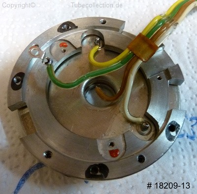 Darüber liegt jetzt diese Scheibe mit einem Spulensystem im Innern und 4 Kabeladern. Der Keramikfinger geht durch das Loch der Spulenscheibe.
